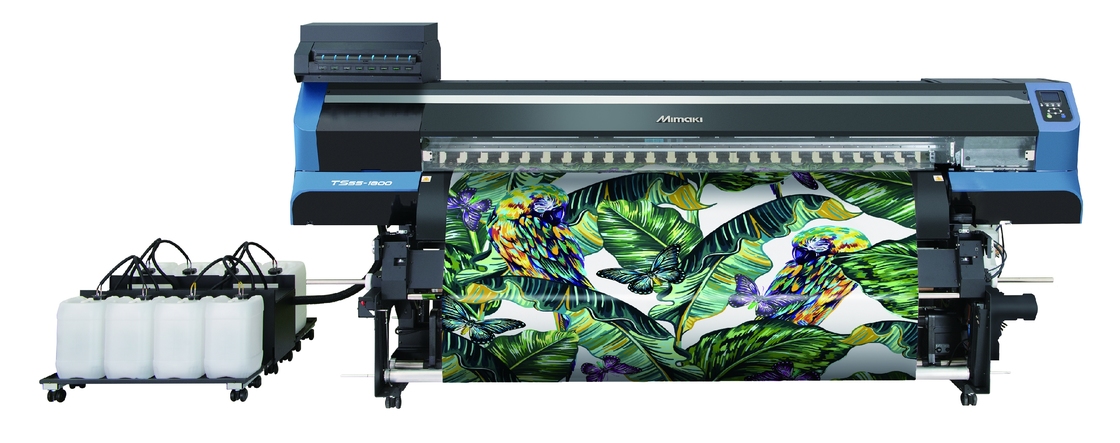 Mimaki TS55-1800 is the evolutional sublimation transfer inkjet printer for textile/apparel use, which achieved the high production ability with the maximum printing speed 135 sqm/h, the excellent functions and useful optional items ensuring the long-time continuous operation, and the reduction of running cost of manufacturing.