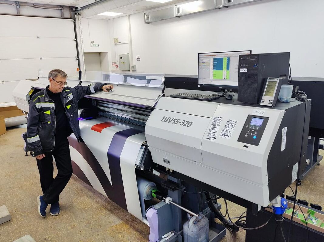 The UJV55-320, 3.2 m-wide LED-UV inkjet printer, offers high cost performance and expands your business.