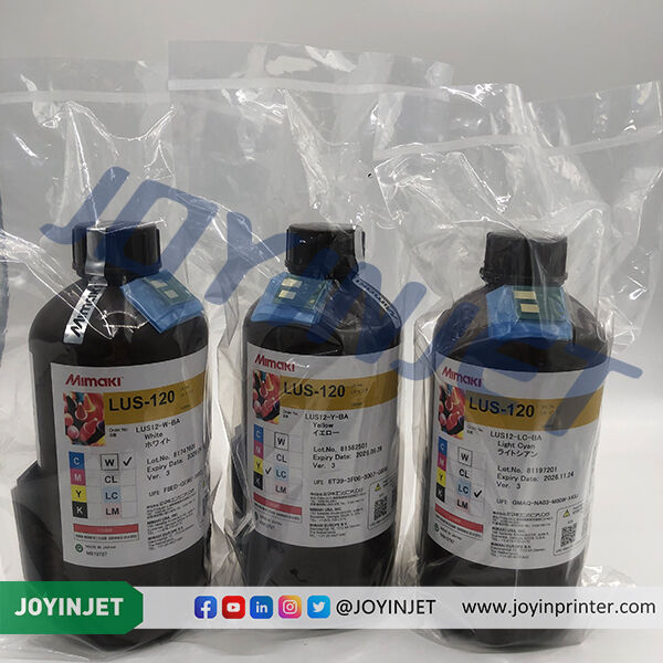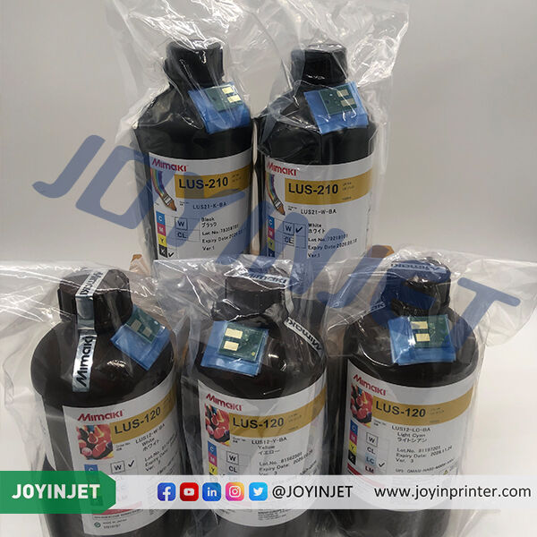 Hard and soft ink types are provided. Hard inks are used on the surfaces of hard materials, such as plates. Soft and flexible inks are suited for membrane panels, films, vehicle-wrapping films, and packaging films. Mimaki UV inks have high media compatibility for a wide range of applications.