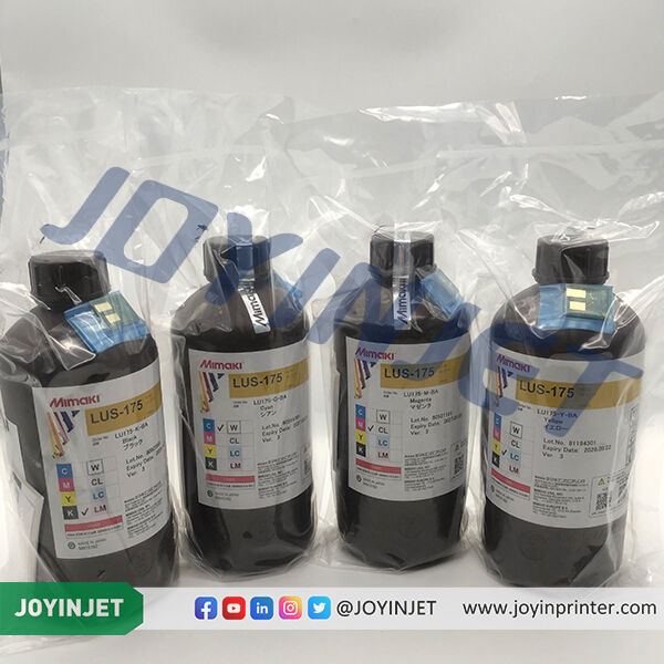 Hard and soft ink types are provided. Hard inks are used on the surfaces of hard materials, such as plates. Soft and flexible inks are suited for membrane panels, films, vehicle-wrapping films, and packaging films. Mimaki UV inks have high media compatibility for a wide range of applications.